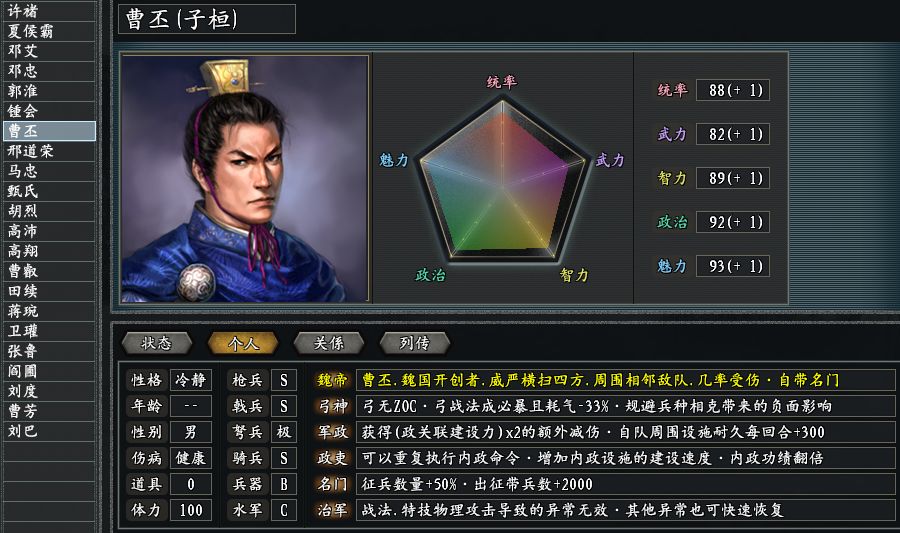 曹丕作为曹操的接班人,即便真正做了皇帝,在后世的人们看来,也依旧活在曹操的阴影之下。原版三国志11游戏里,曹丕只有熬到曹操下线,才能迎来他的时代,惊鸿版可就不一样了,开局就给了曹丕与其父并立逐鹿的机会。