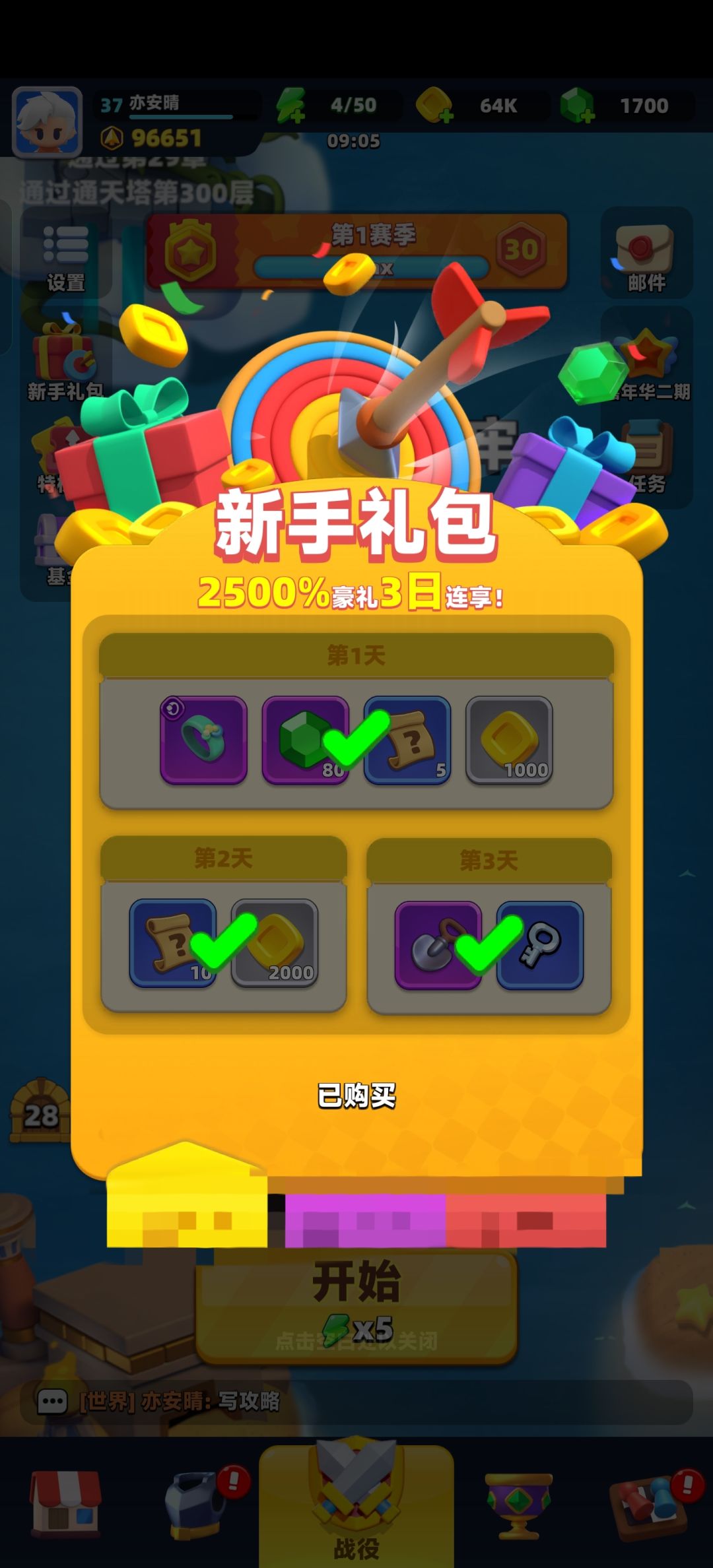 先说新手礼包,一共三档,
