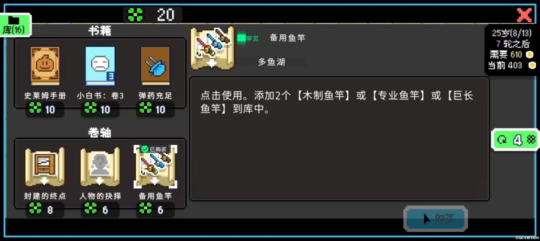 在【幸运四叶草】有限的情况下,是会先买书还是卷轴,也是一个重要决策。