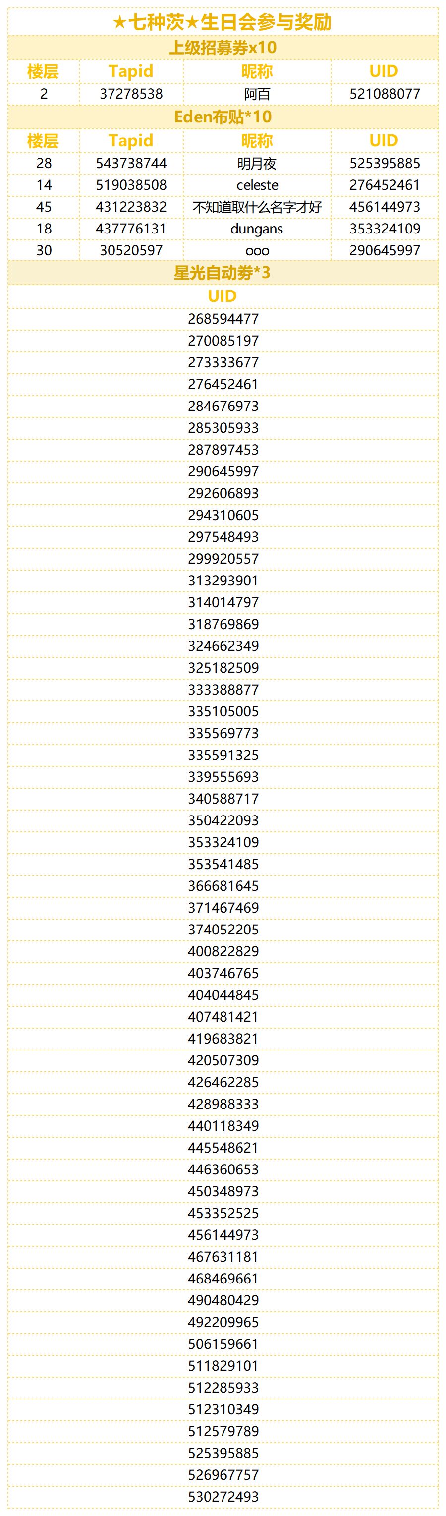 制作人们久等啦,让我们恭喜以下幸运的制作人们!