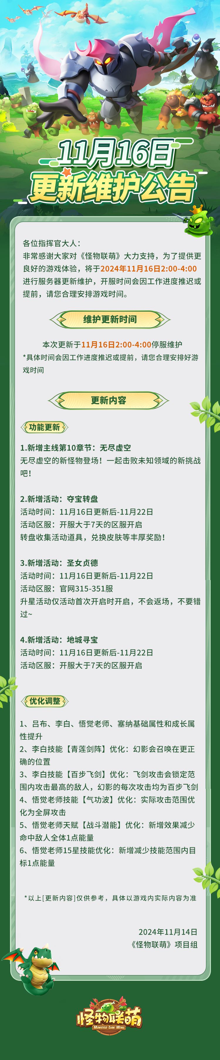 11月16日更新维护公告