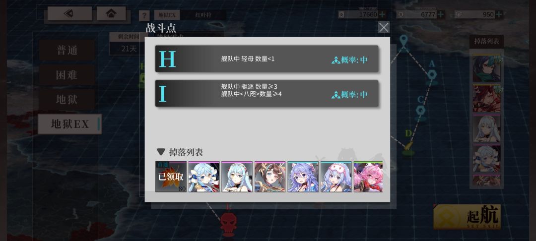 绿龙2 A C D E F G I J L 条件1轻母,3驱,4八尺,1驱逐旗舰没有战列旗舰,航速小于35.5