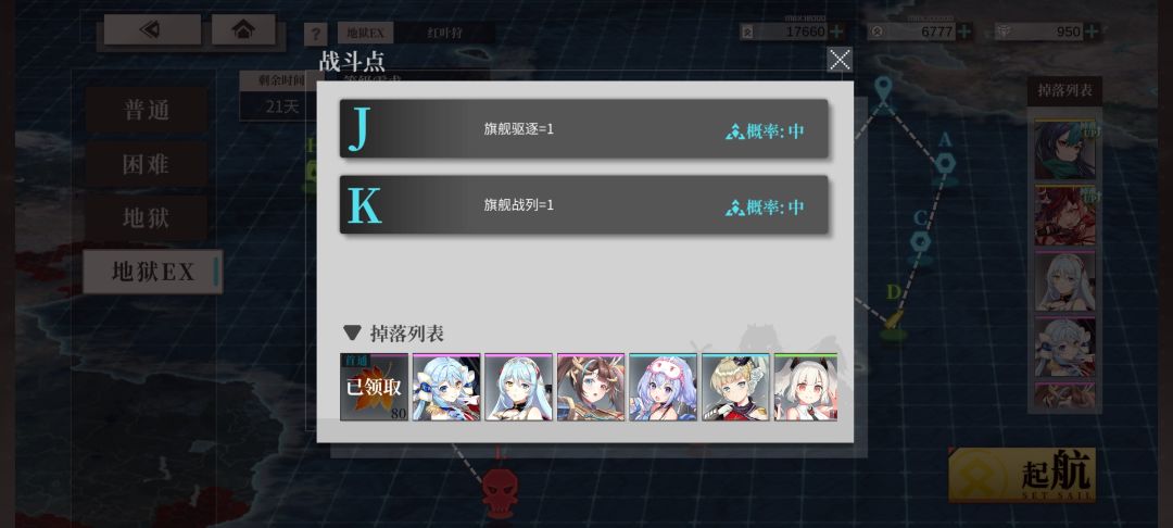 红龙1 B E F G I K M 条件2航母,1轻母,3驱,4八尺,1战列旗舰且没有驱逐旗舰