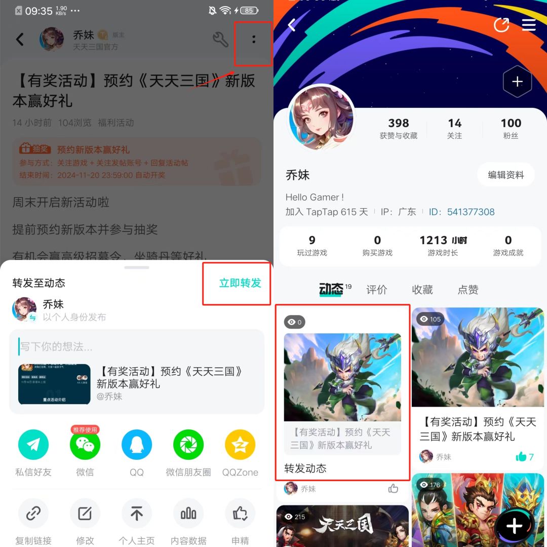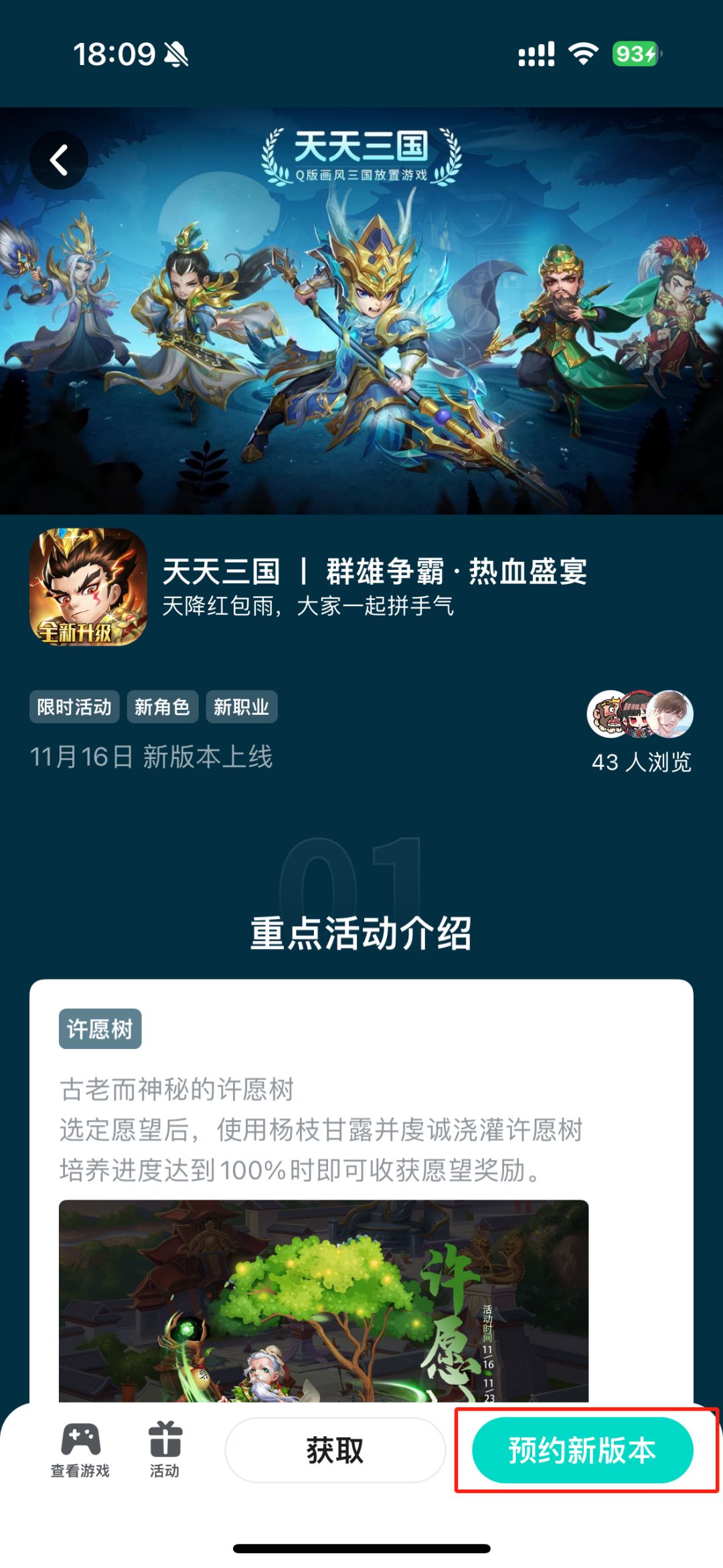 方法二:在TapTap中搜索“天天三国”,点击下方的图片即可进入“预约新版本”界面。