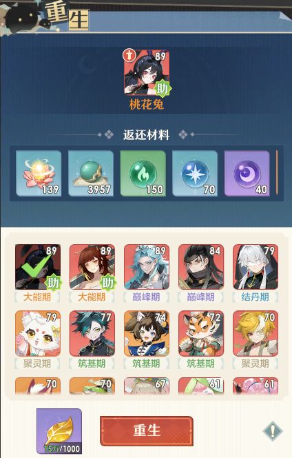 契灵培养很简单,但是若是想换契灵了怎么办呢?全部重头养成本太高。此时,就可以用到游戏内的【重生】和【转生】功能了。