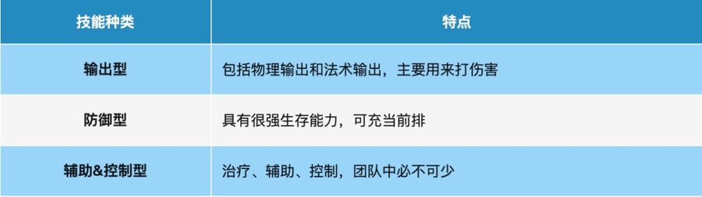 按照技能种类来分,可以分为三种,具体如下表所示: