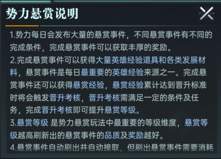 情报点数每半小时回复1次,上限60点,每天48点,建议尽量做完!!同时尽可能选择高品质任务和快速提升悬赏等级,悬赏等级越高高品质任务刷出概率越大