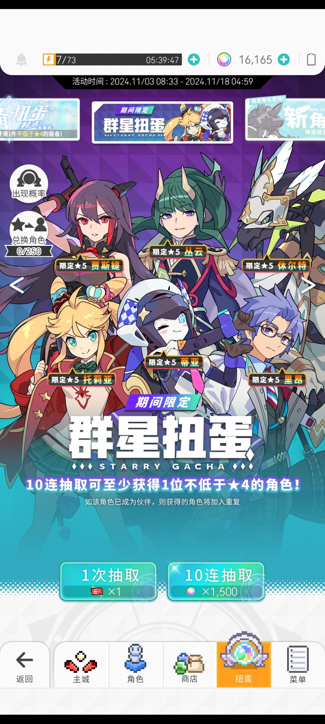 先抽流星祭,抽250抽,250抽得有菲莉亚(流星奶),井兑换夏尔(七哥);如果抽到七哥(再说一遍本游戏重复没用!不要兑换重复!),先留井。