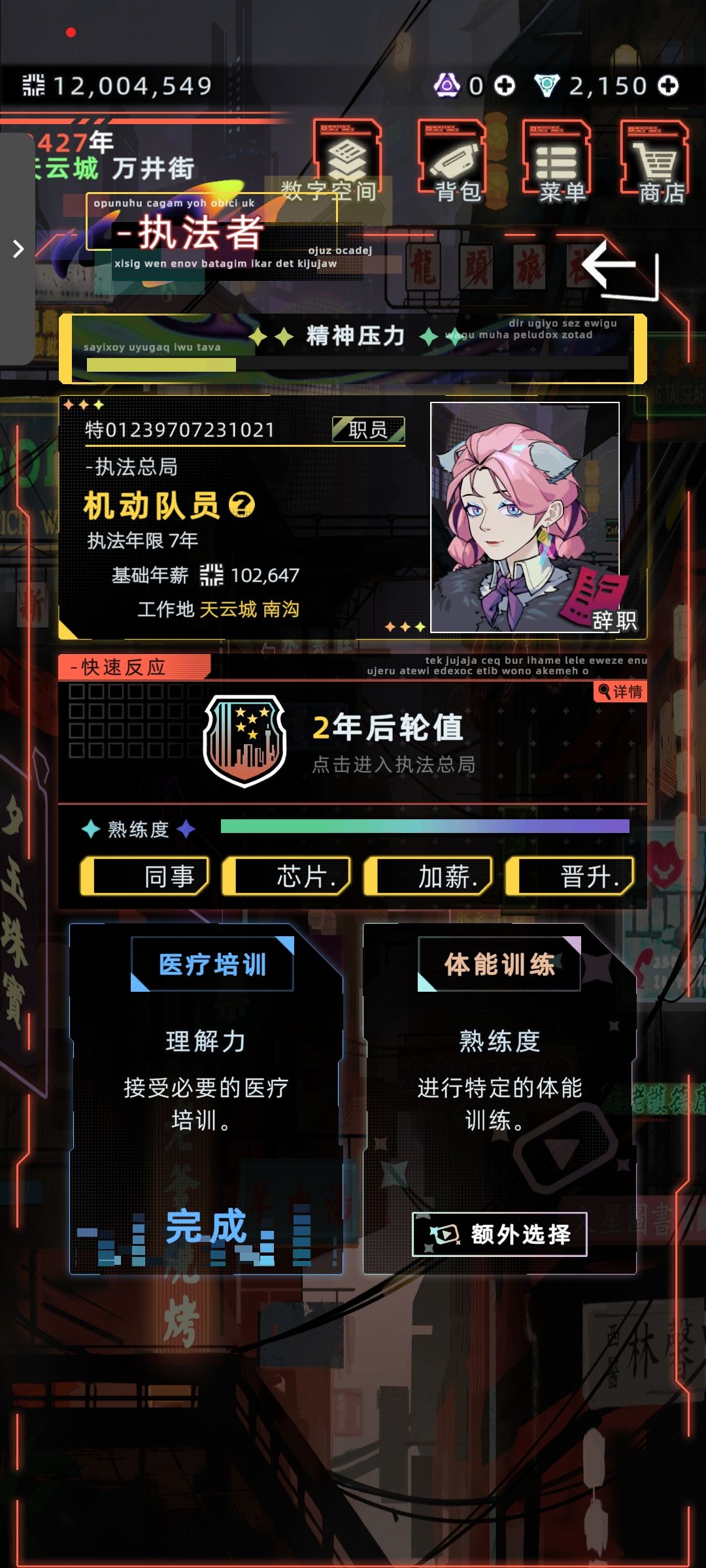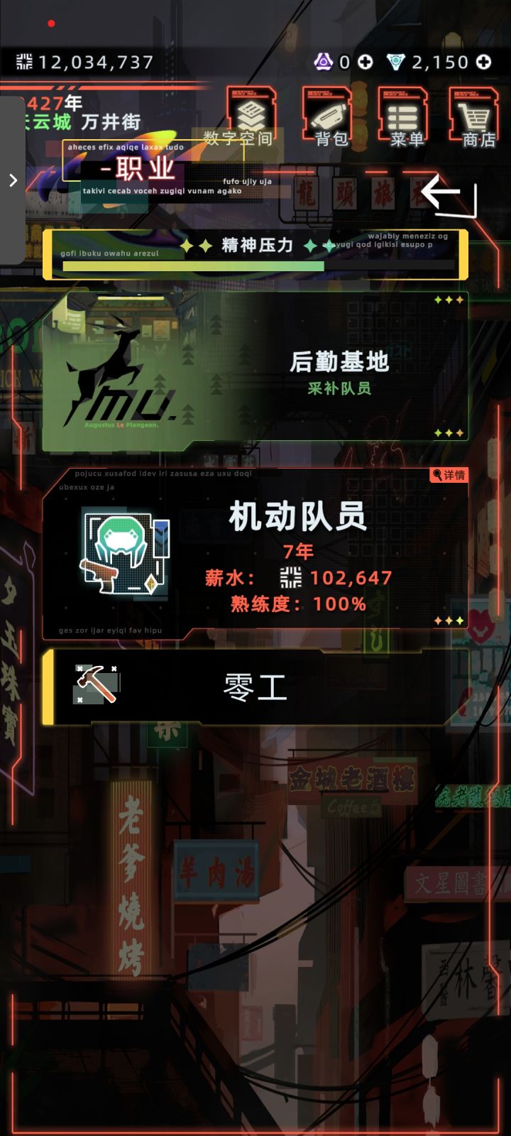 一开始玩的是原主,生的女儿选了治安这个职业,常识是执法者和佣兵水火不容,但是!女儿在学完治安后有两年显示不工作的,原主让她工作她说“已经在工作,做更重要的事”,非常好奇,过两年女儿又有实习执法者的职位了,然后夺舍女儿后发现既有执法者又有佣兵工作,还能加入牧组织,多倍工资美汁汁儿