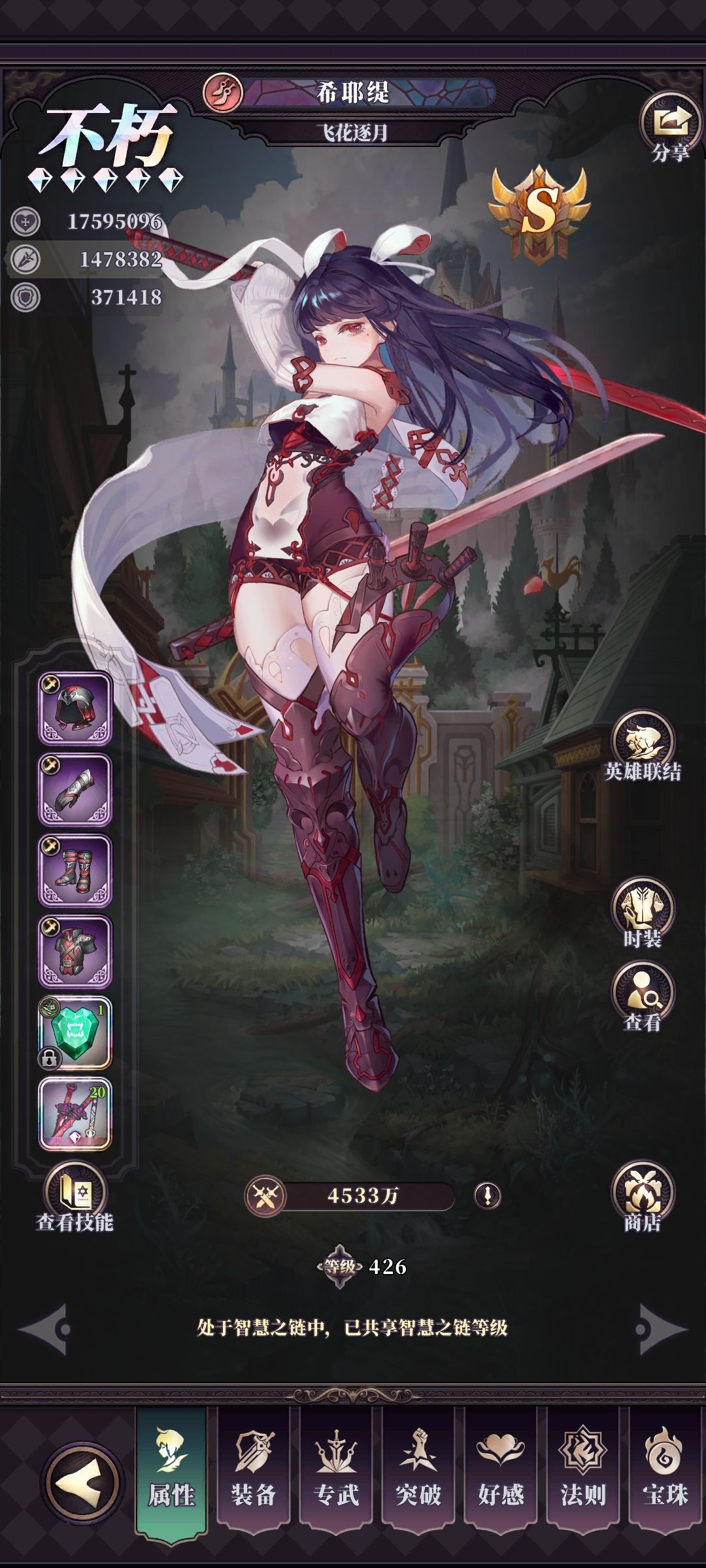 推图最强势神法阵容,也只介绍这种,下面是97-10毕业面板,推图多了深渊打不过的