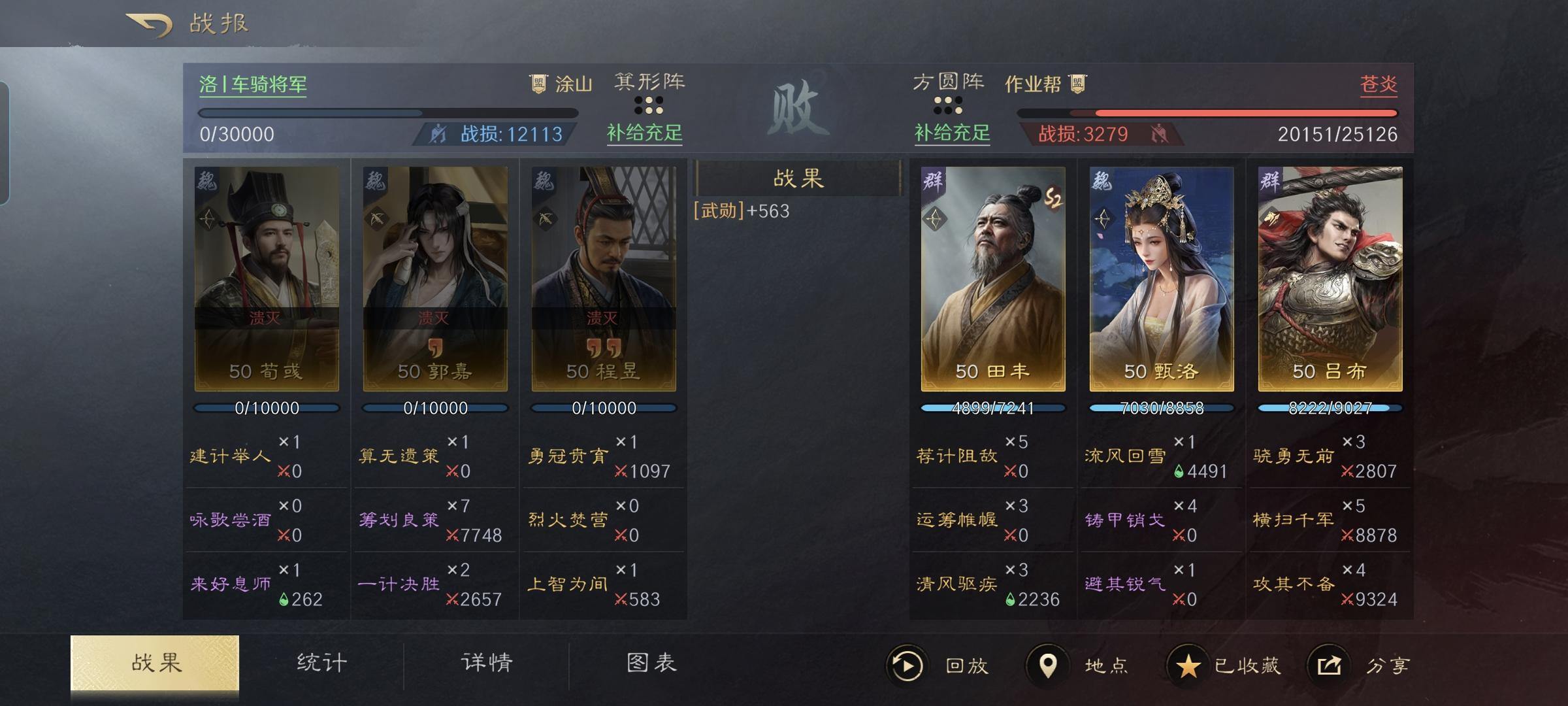 田丰和甄洛联合组成的前排防线,尽管坦度一般,然而奶量和削弱对手的效果却都相当棒!特别是田丰,通过荐计阻敌不仅大幅提升了本方吕布的全方位能力,更是把对方统率力最低的荀彧给削残了。