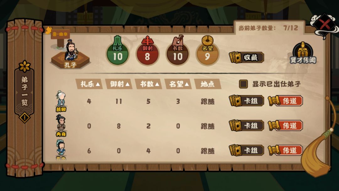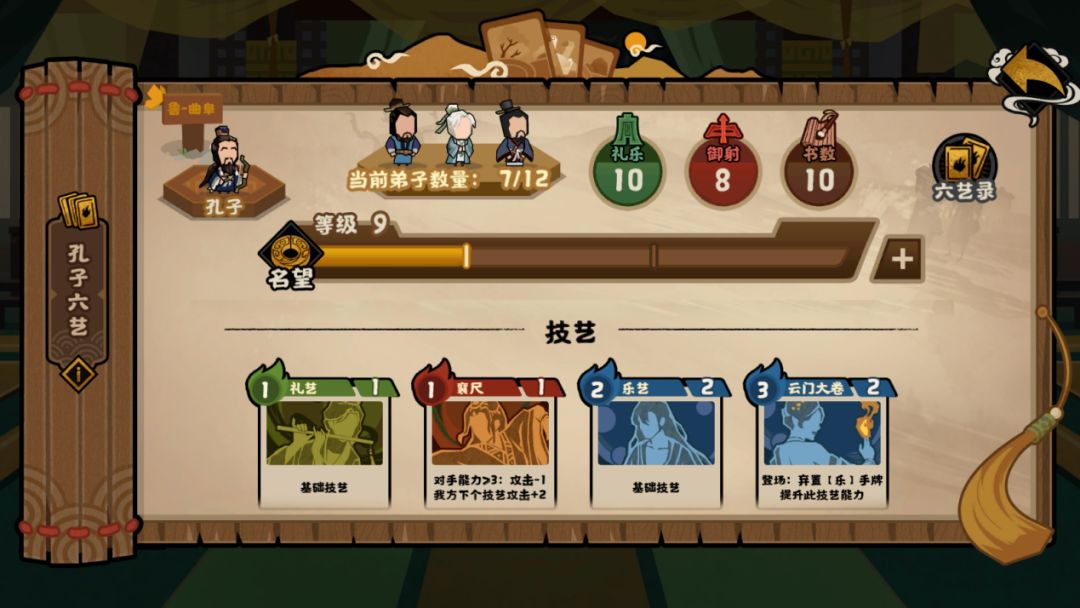 ②提升孔子的名望等级,解锁更多卡牌并提升传道气数上限