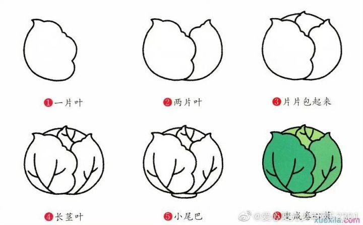 这就是一颗包菜,用6个步骤就画好了。