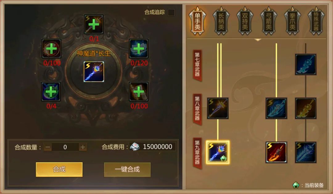 消耗材料:对应八章法术武器+空相宝莲+暗金淬神打造书+金鳞萃玉+神魔道心