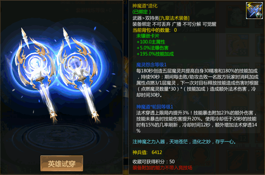 下版本更新后,九章法术武器「神魔道」系列开放合成!神魔一念之间,蓝金双色变色,超高技能加成,穿上它即是战场上最靓的存在!!