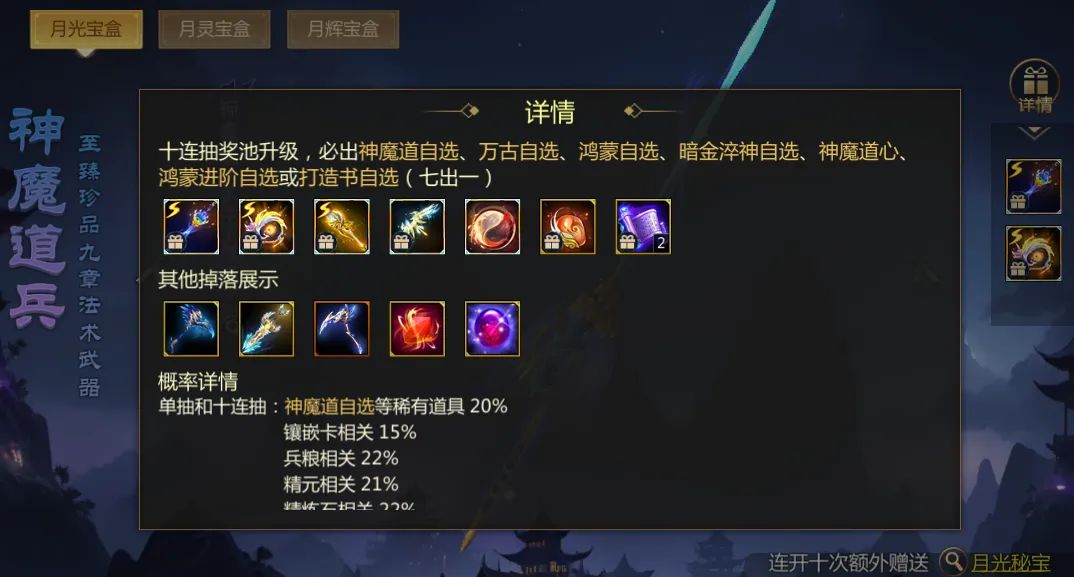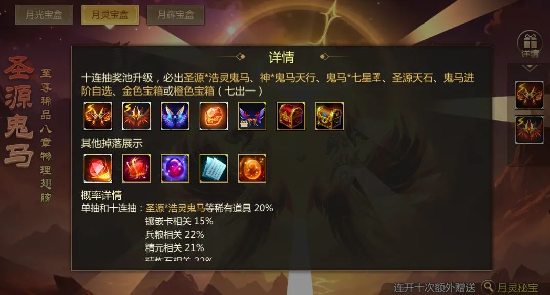 2十连额外奖励,惊喜月光秘宝