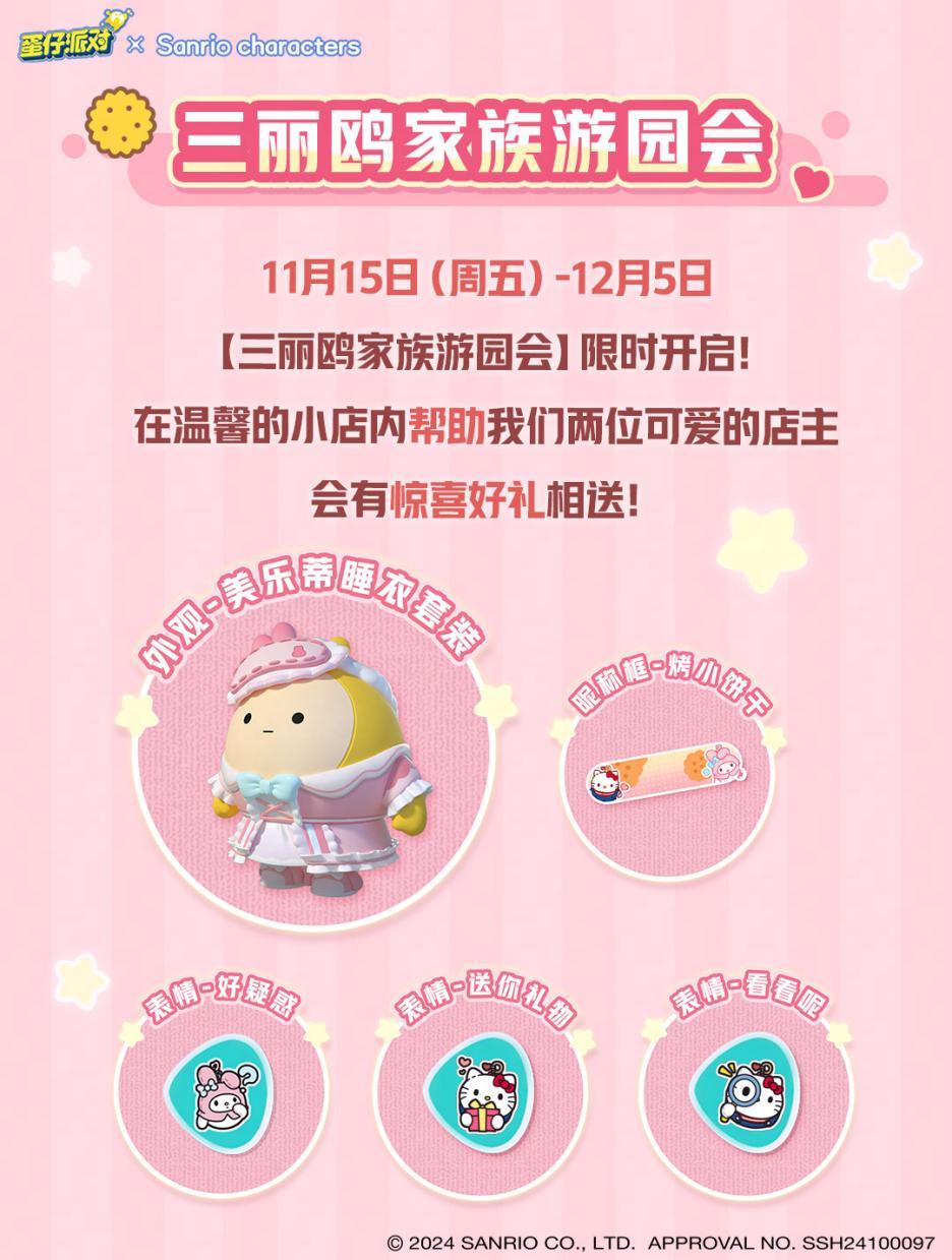 梦境阑珊,柔软相伴。11月15日,国民原创乐园游戏《蛋仔派对》× 三丽鸥家族联动2.0开启,【三丽鸥家族游园会】限时上线,与玩偶Hello Kitty、美乐蒂两位萌星携手,在一份份共同合作的甜品中共创美好回忆!