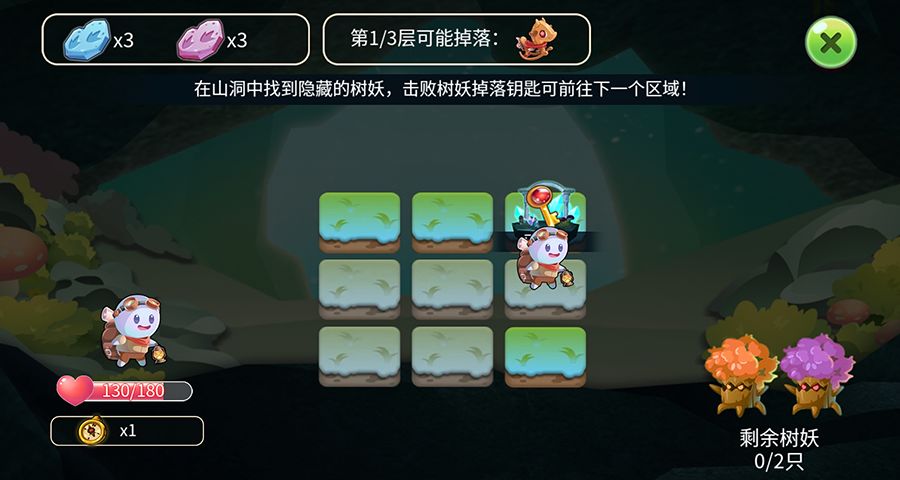 在山洞中寻找树妖,可以驱散迷雾查看树妖位置以及化石位置~