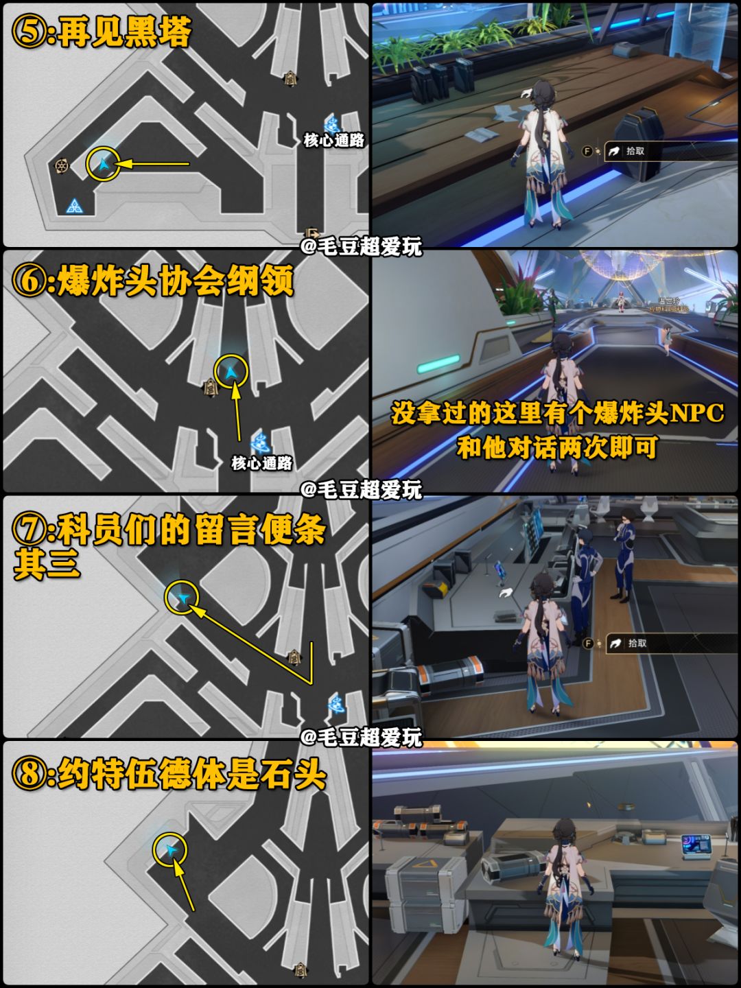 各位开拓者可以在书架→空间站「黑塔」中查看已获取/未获取的阅读物,再通过毛豆标注的点位查漏补缺收集即可。