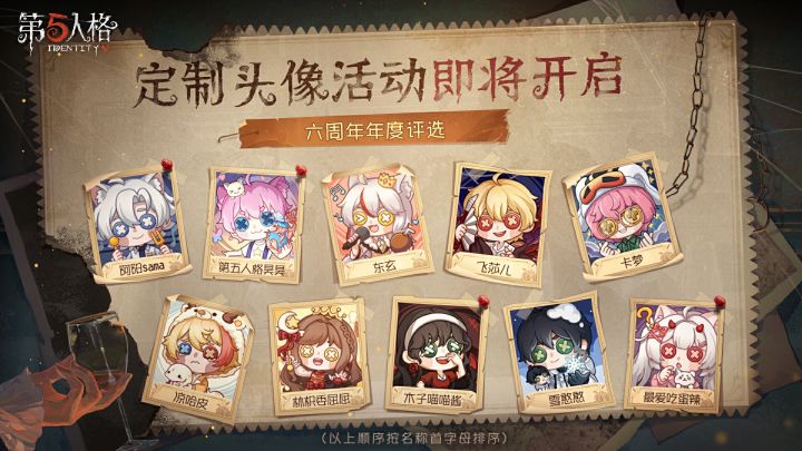 六周年年度评选定制头像公开!再次恭喜以下获奖者:阿阳sama 、第五人格昊昊 、东玄 、飞莎儿 、卡梦 、凉哈皮、林枳委屈屈、木子喵喵酱、雪憨憨、最爱吃蛋辣!