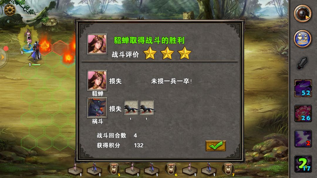 4回合貂蝉爆发搞定,总共用时6分钟,3战10回合。就是这个密保爆率不高,或是本人脸黑150次什么都没有,祝大家双节快乐早得密保。