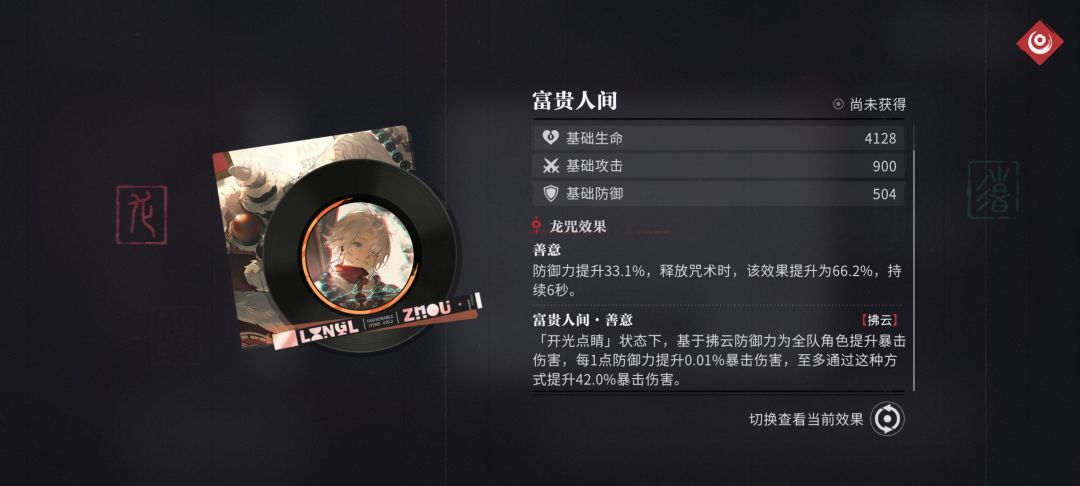 增加防御力,并在[开光点睛](增伤)下,根据拂云防御力为全队提升暴击伤害,最多42%。恐怖如斯!