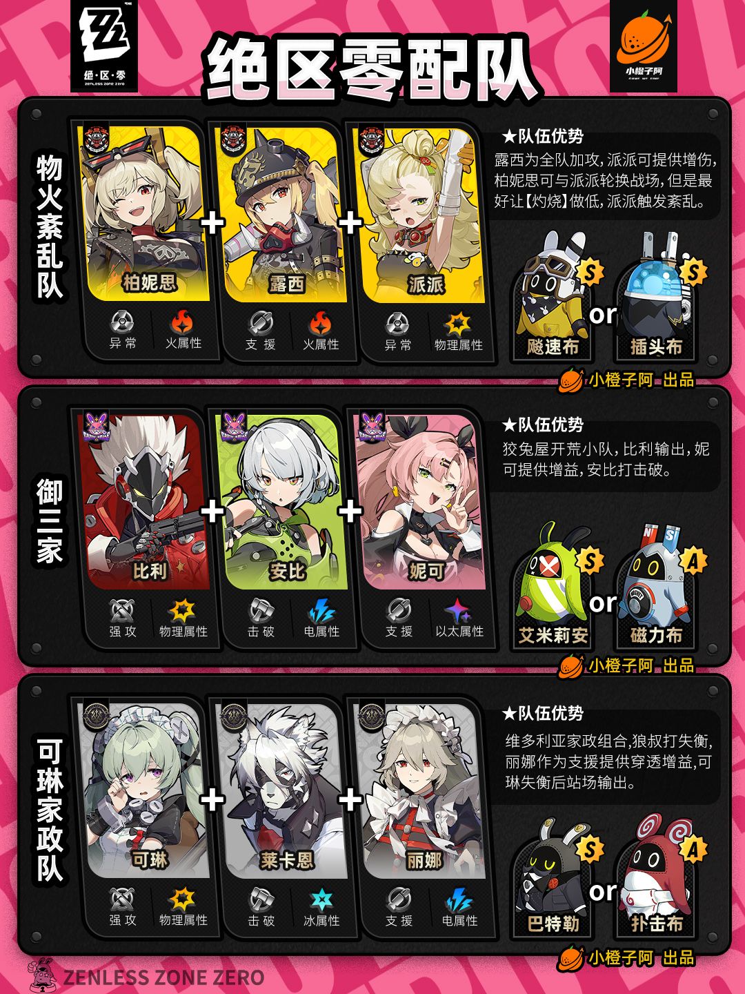 这一期是全角色的配队情况,橙子加入了月城柳的一些配队,同时也将过去的一些配队进行了更新。