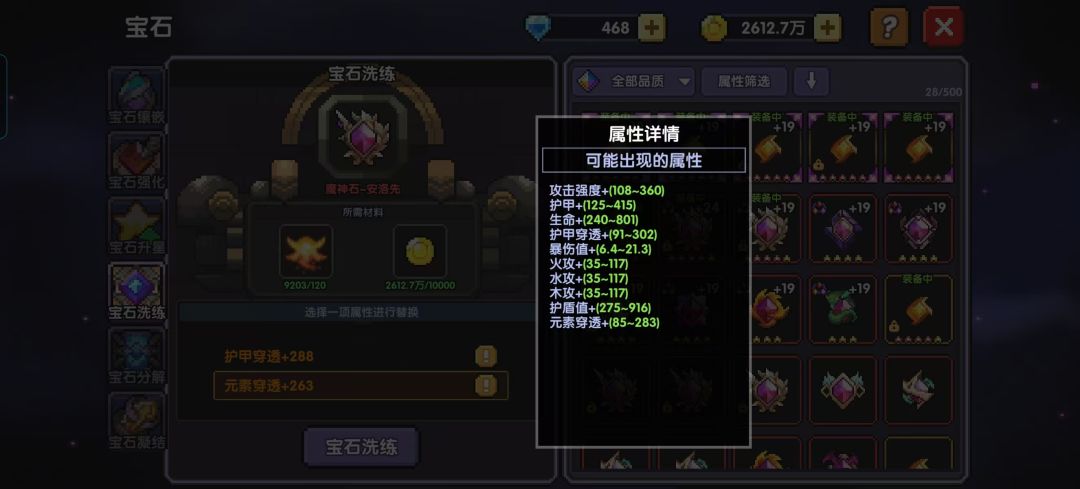 5.别太追求完美:有些排行榜纯属图一乐,比如武器榜,不需要为了上榜而去洗练已有的三可用橙色词条。对于宝石,紫宝石仅在前期橙宝石和魔女宝石不够的时候用,找有双穿的戴上就行,宝石洗练和赌卡的时候别上头,不然小心花钱负提升。符文的胸部,脚部符文能量提升24点满,有23+就可以停了(氪佬可以多洗点)。