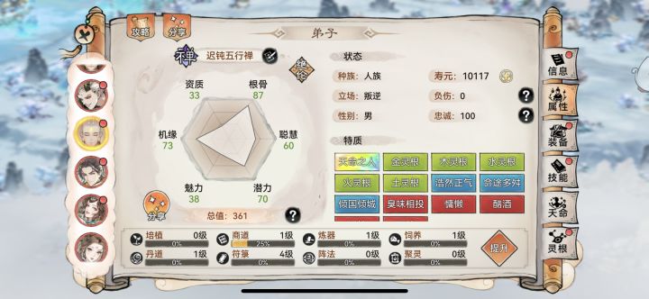 目前阵容:龙、五行迟钝禅、天土禅、韩立(送的)、唐