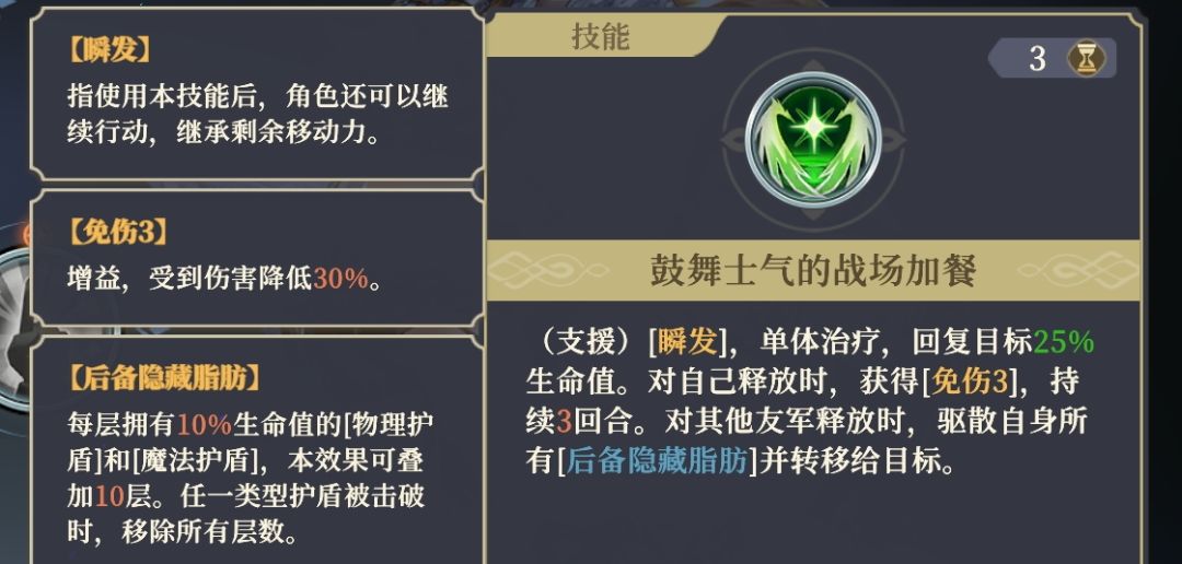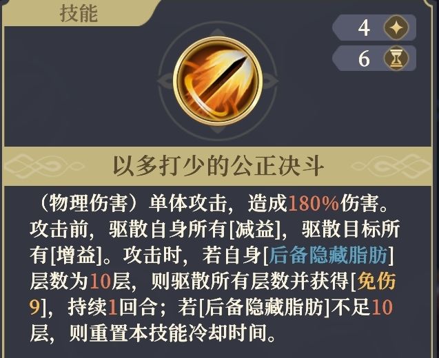 _所有脂肪只持续2回合,需要持续获取来维持。反应技有助于维持层数。