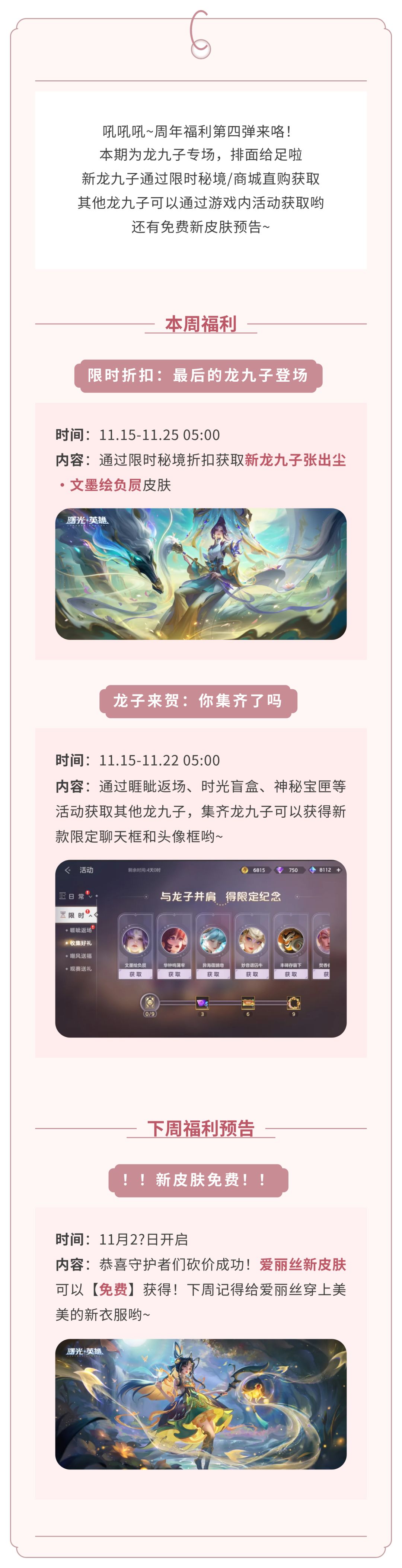 周年福利第四弹:龙九子来贺,新皮肤砍价成功,免费!