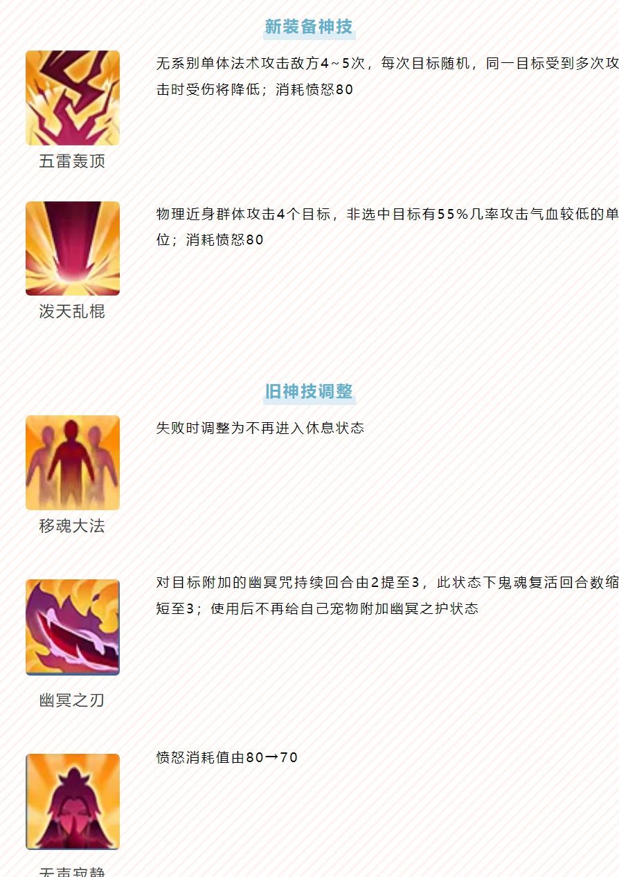 全新神技、神通与旧神技、神通调整