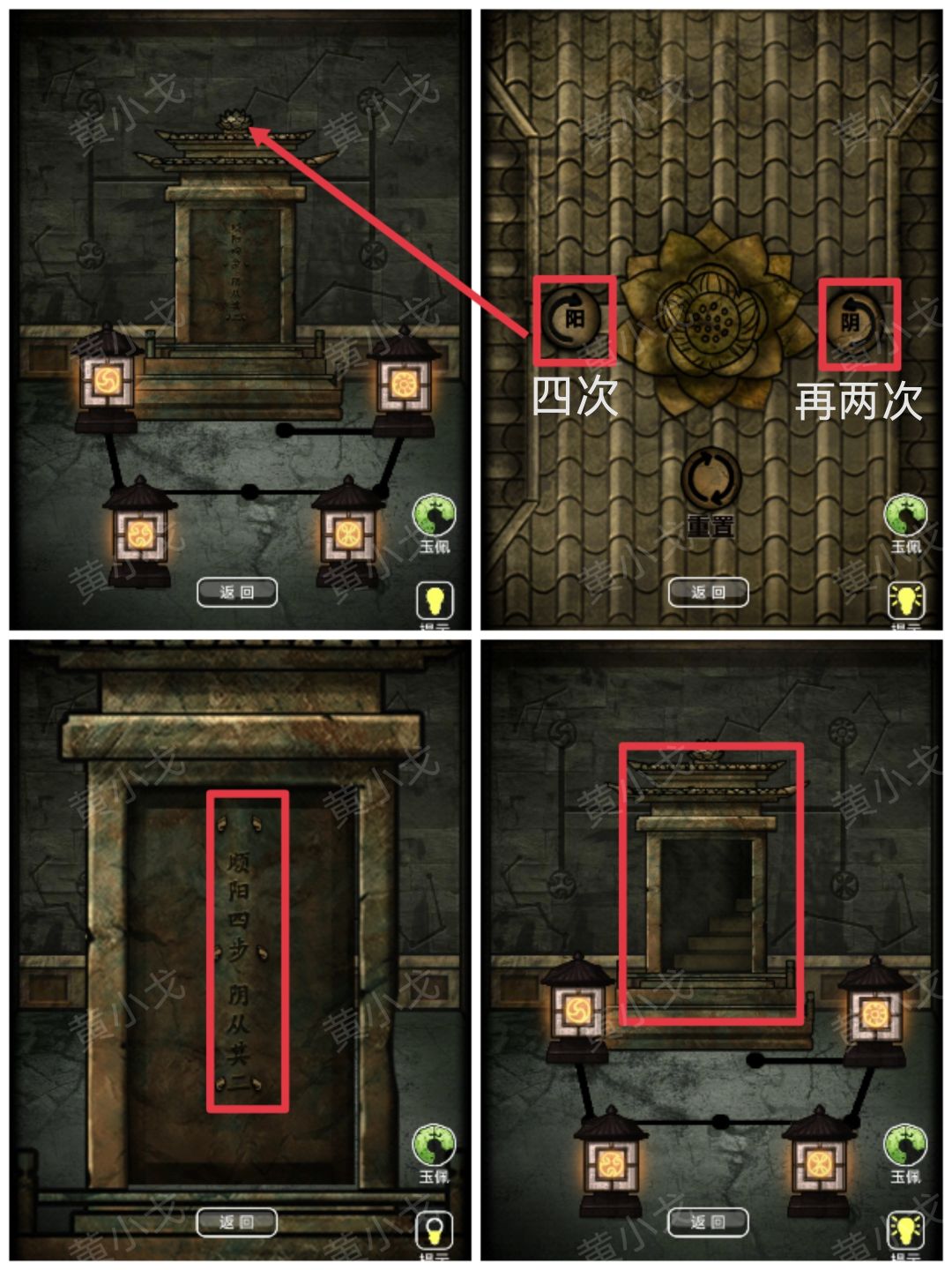 24.点击墓碑上的莲台机关,根据墓碑里的口诀,按顺序及正确的次数点击两个按钮,打开暗道