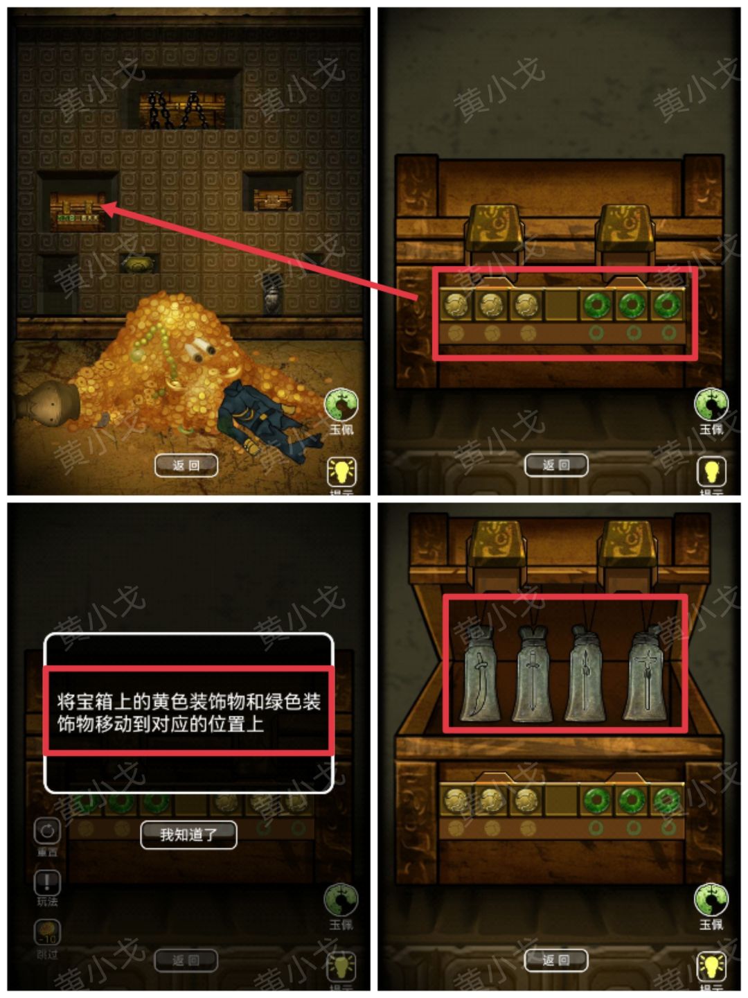 🔶规则:将宝箱上的黄色装饰物和绿色装饰物移动到对应的位置上
