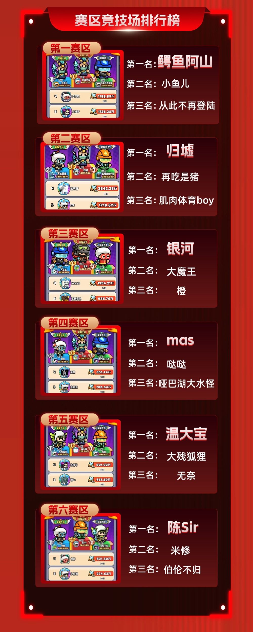 管家为大家带来了当前「荣耀战场」六大赛区的顶峰选手