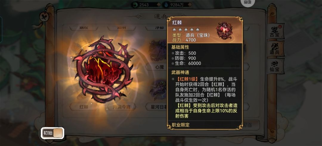 4.常见养成:携带红棘的弟子要堆生命,可以在法宝炼化的时候炼化生命,装备选择上面词条属性上优先选择生命。