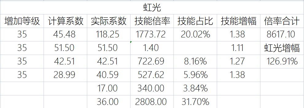 四技能:单虹光,26.9%;单时间,38.0%;虹光时间,83.1%。