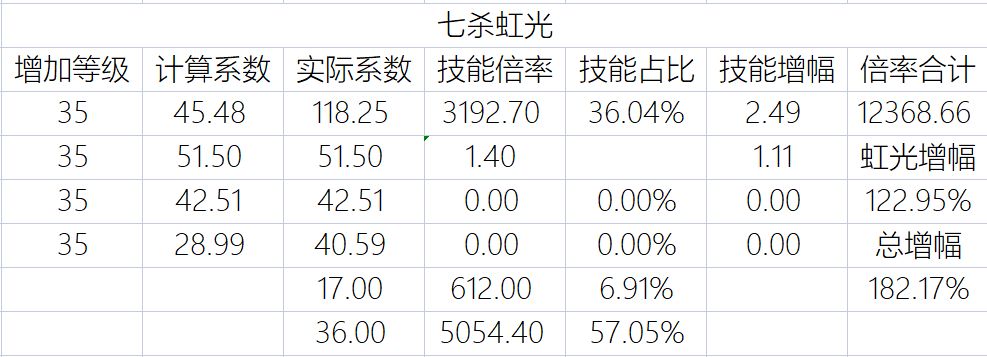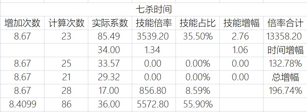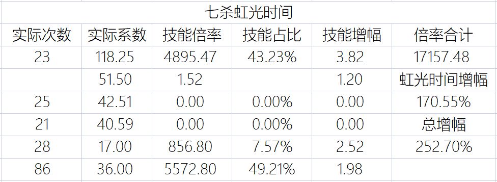 七 杀:单虹光,22.9%;单时间,32.8%;虹光时间,70.5%。