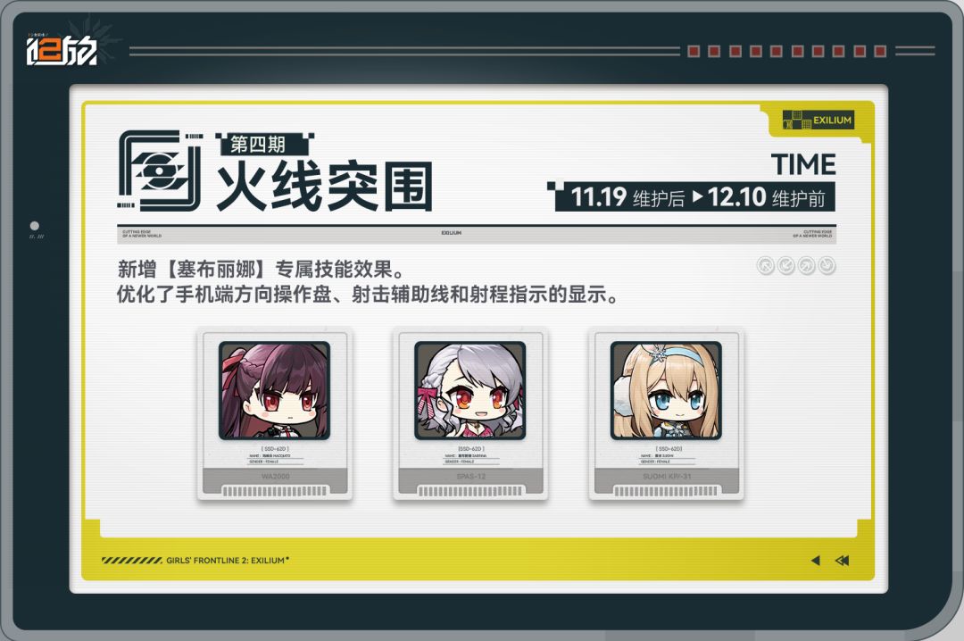 本期【火线突围】提供出战人形:玛绮朵、塞布丽娜、索米。