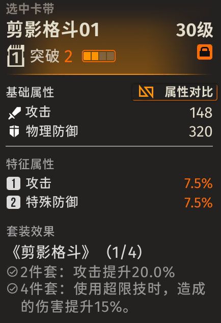 剪影格斗4件套可以在超限技时提升15%的伤害,再配合上刺灰的天赋,一回合至多能打三次超限技伤害,最高可叠加385%的群体伤害,无疑是最完美的选择