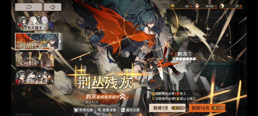 - 刺灰是优秀的可以对单,也可以对群的特工,对群效果更佳,能快速清空敌人血条,长线作战时由于刺灰自伤的天赋需要时刻注意刺灰血量
