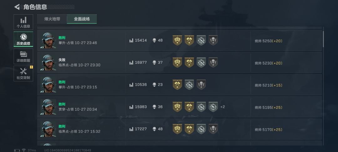 战场好在不用在意kd,但上分速度和流程及其恶心。攻防算平均13分钟一把,13分钟拉满也才20分,还要不断和队友勾心斗角,队友发力一下就只有16分。烽火平均18分钟,杀一个人就是26到34分,但死了要掉26到35分。不过烽火模式死了之后重新配装,日常刷钱整理子弹还是挺费时间的。