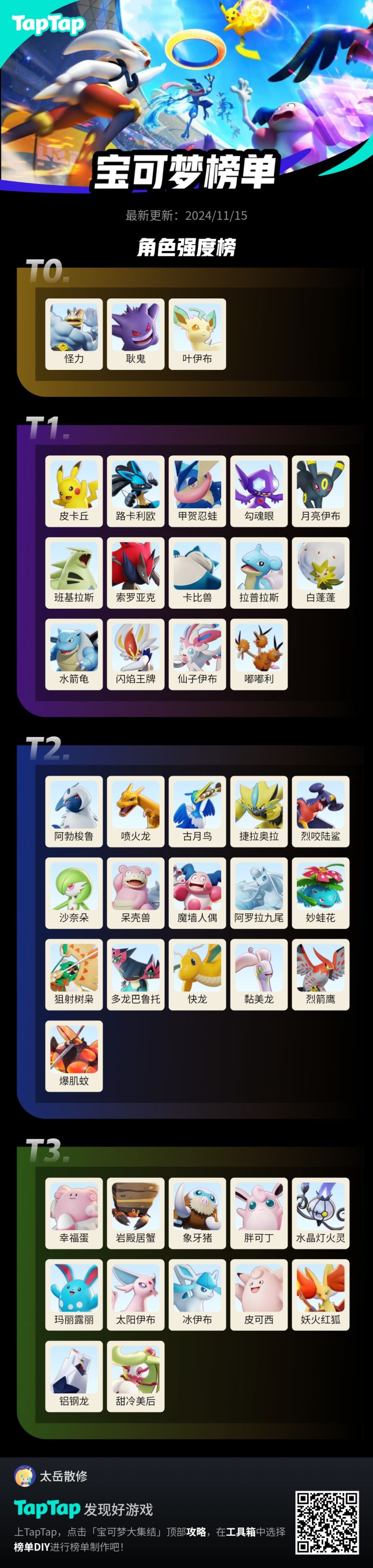 #宝可梦大集结榜单 首先我先说各类型肉眼可见的强度高的英雄,只适合当前版本各位置的对局,个人理解如有不同见解,欢迎友好交流
