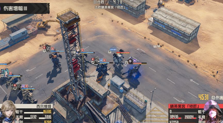 敌人距离我们较远,所以我们上阵奈奥米和西尔维亚可以有效解决远处敌人,而boss的话,我们采用迪恩和西尔维亚来锁头攻击boss,机制方面,理解起来较为复杂,这里不详细分析,我们可以简单理解为boss攻击后会根据debuff数量来恢复耐久,所以最后时候我们需要计算好伤害,避免攻击未能消灭boss反而让boss回复大量耐久。