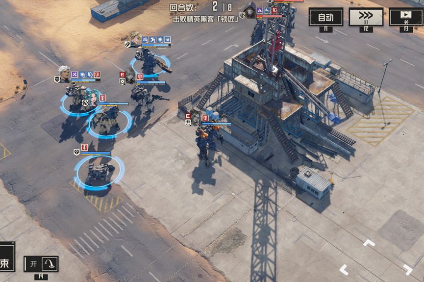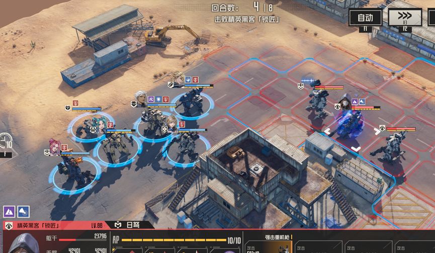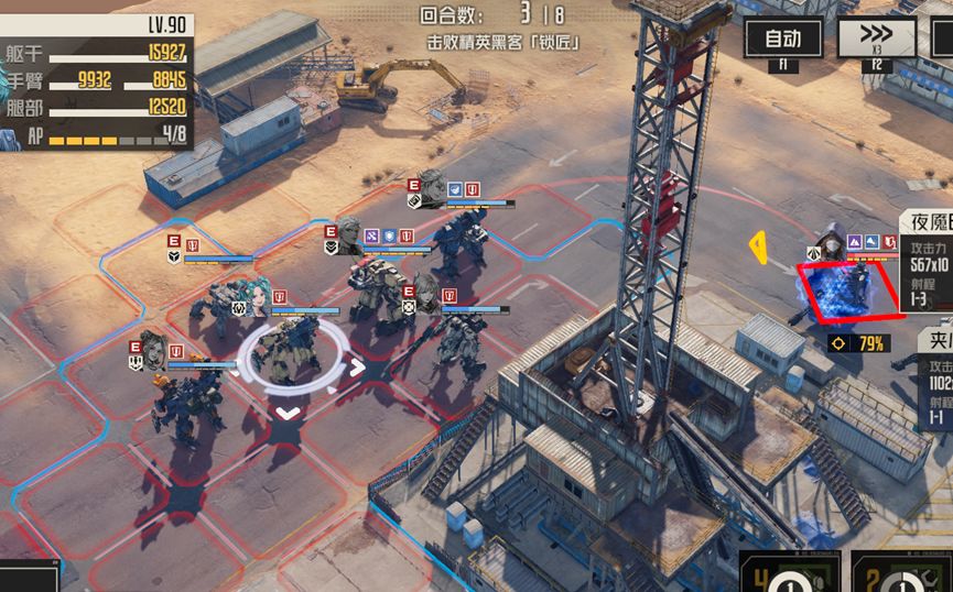 奈奥米打残上方敌人,随后迪恩收掉,补充ap,这里迪恩暂时不攻击boss,而是走出boss攻击范围,避免下回合boss回耐久