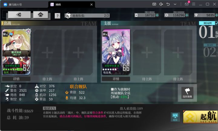 如果岛风没婚,只有活动加成的60级,就得像第四张图一样加个后排输出,我这也是顺便直接拿活动的龙骧上了。