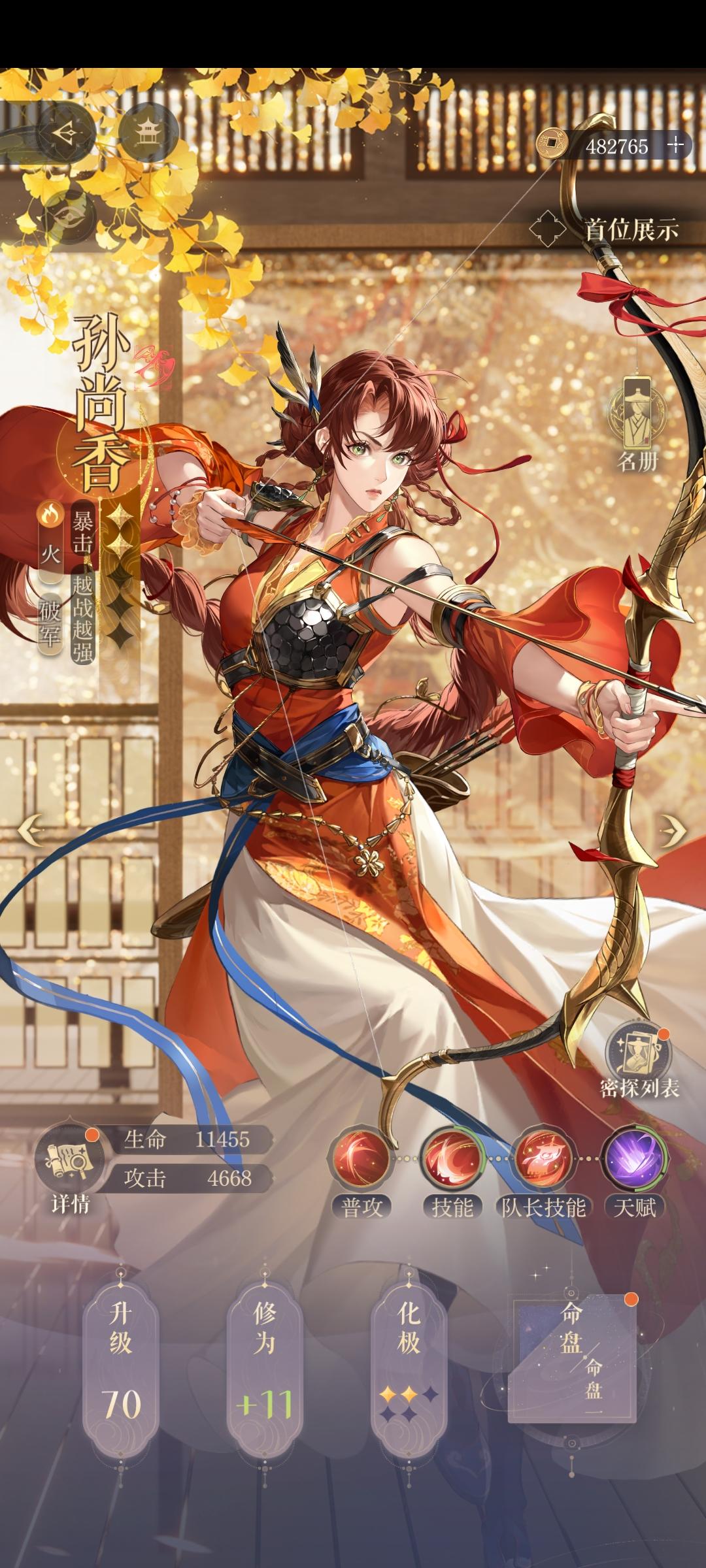 伤害标准:这东西不好判断了,香香有行动暴伤buff,每次出手伤害都不一样,我只能给个首动暴击7k的数据,2回合大招暴击是3.2w(不暴是1.3w)