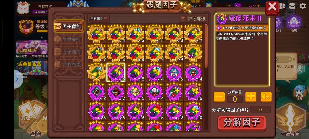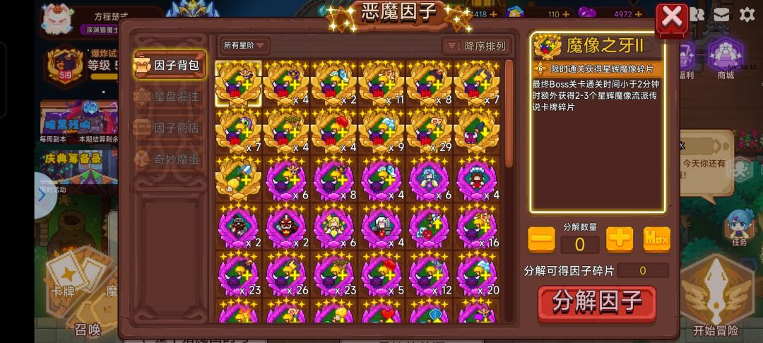 游戏中有名为xx之牙xx之邪的因子,能给玩家提供对局中击败BOSS增加额外卡牌碎片掉落的效果。
