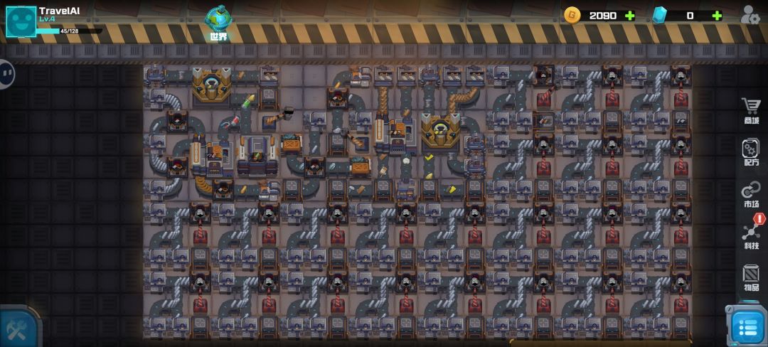 2️⃣、研究科技可以解锁物品和建筑。科技依次按顺序解锁,下面一排副科技(子弹和芯片)没开完地前,不用解锁,前期没啥用。⚠️新人建议看广告尽快把钛块研究出来。