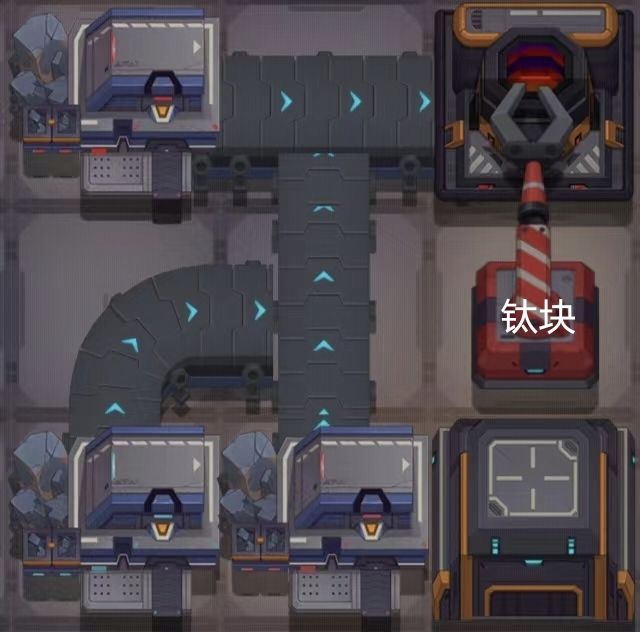 前期只生产钛块卖钱,其他的不划算。按图5那样,摆钛块模块卖钱。第一时间把所有钛块模块升到3级,(箱子最先升3级)箱子17.5小时才满。⚠️在市场出售,背包出售亏死。图中红色夹子设定抓取钛块,碎石锁在炉子里🔒。这样碎石既不会流到箱子里占地方,一键收集也不会收集碎石。